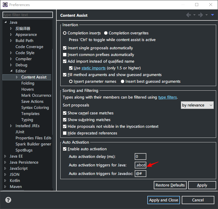 Java/Content Assint/Auto Activation/Auto activation triggers for java为.abcdefghijklmnopqrstuvwxyzABCDEFGHIJKLMNOPQRSTUVWXYZ(, @![]()